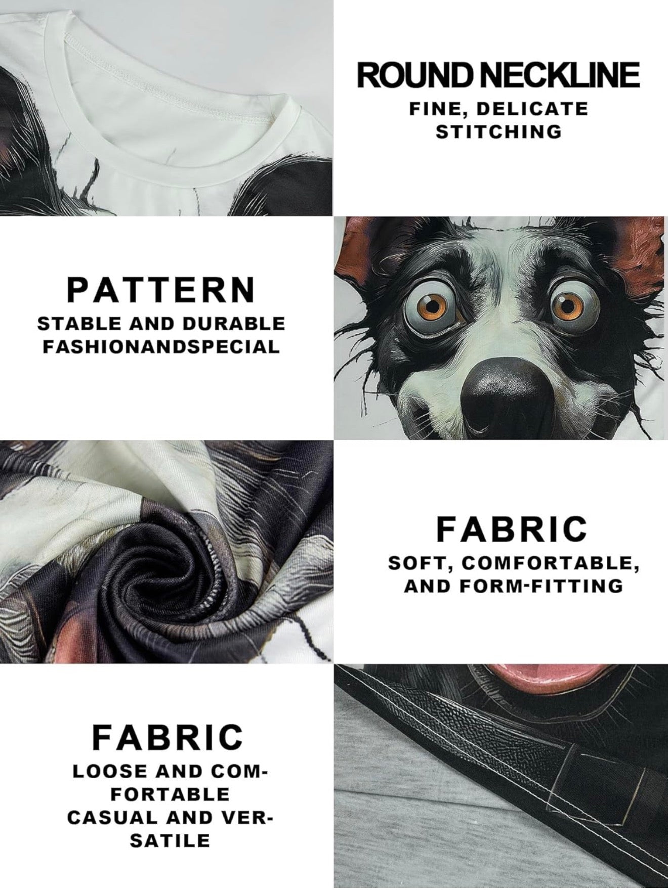 - Statement 3D design: A vivid, life-sized dog face print that pops from the front of the tee.